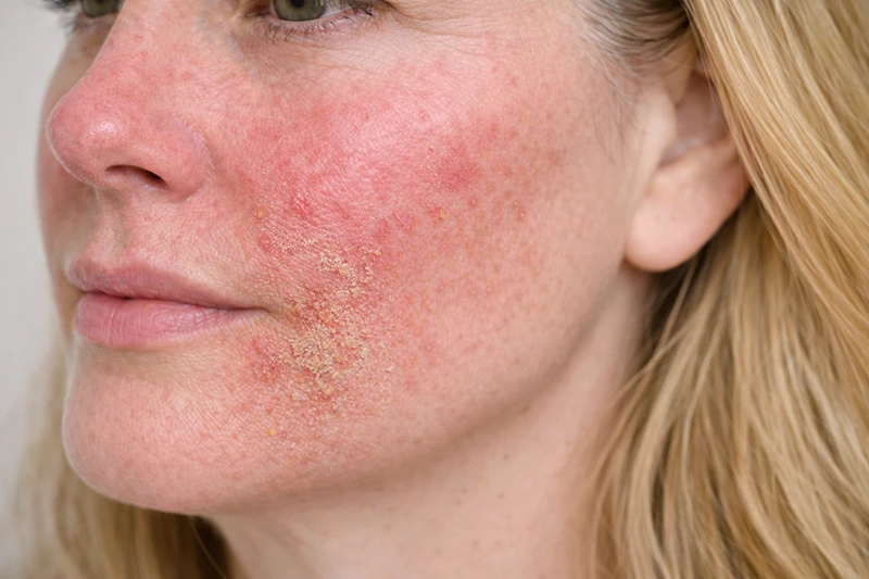 Eczeem is een chronische huidaandoening die gepaard gaat met roodheid, jeuk, droogheid en soms schilfering of blaasjes. De huidbarrière is vaak verzwakt, waardoor de huid gevoeliger is voor prikkels zoals kou, warmte, zeep of stress.